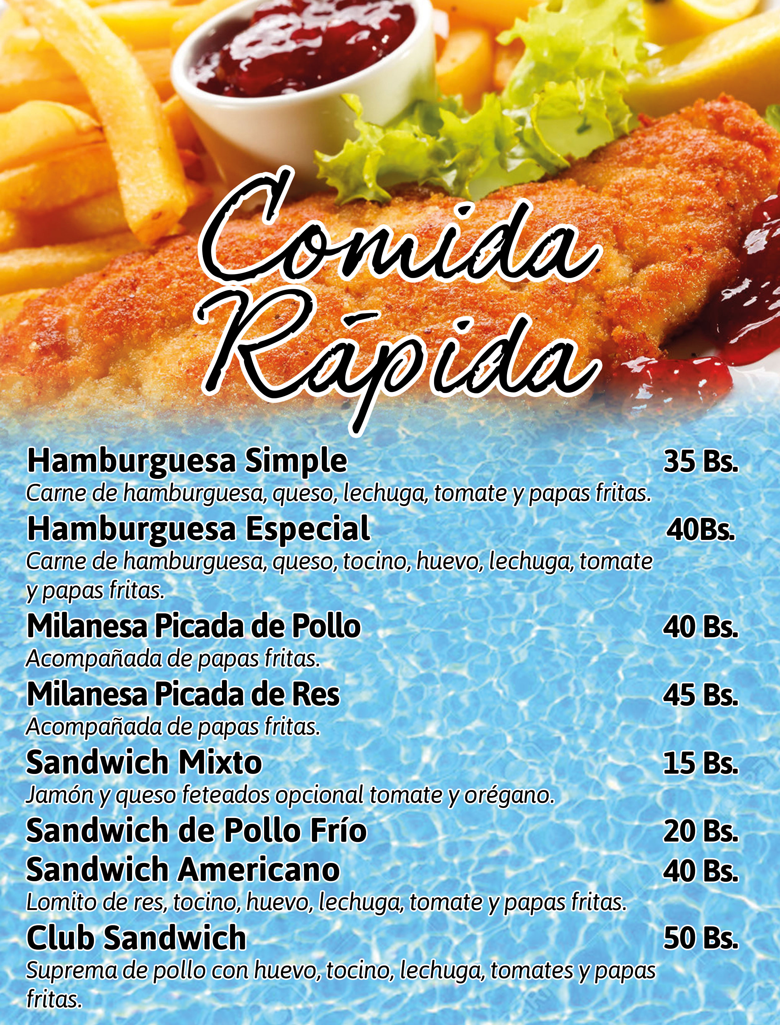 MENÚ PISCINA